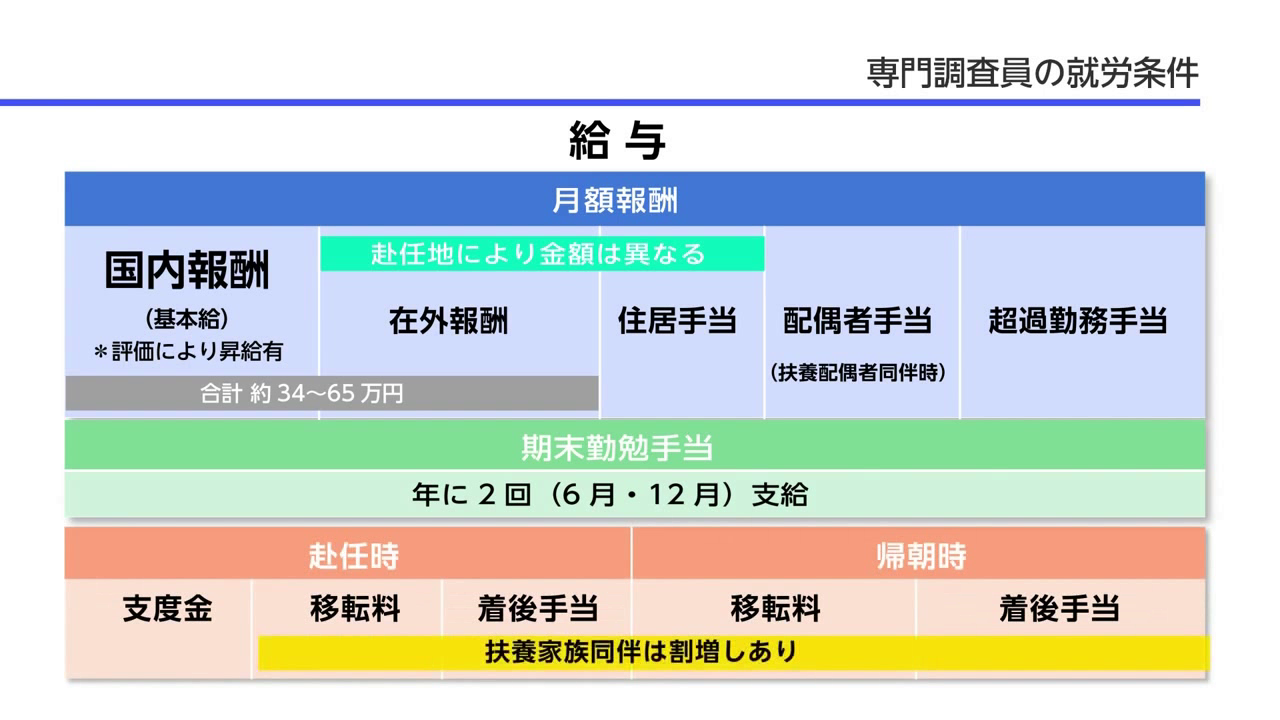 (3)在外公館の組織の一員として、海外での長期派遣の任に耐え得る者。